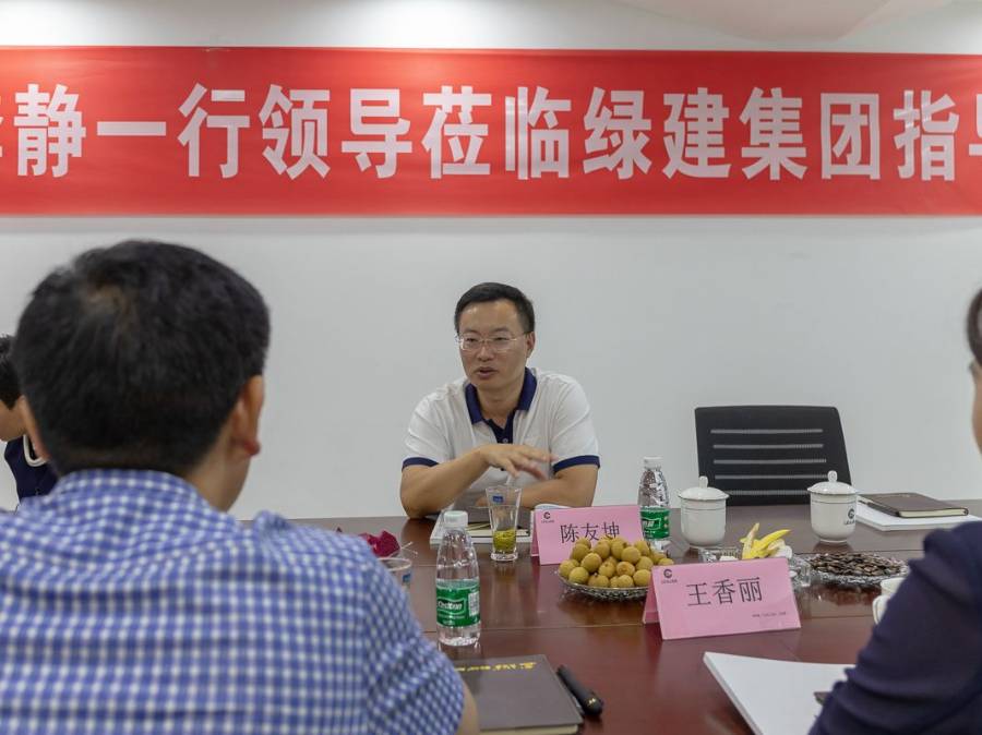 期間,董事長王建發先生從公司使命愿景、戰略方向、組織構架以及業績訂單方面對綠建集團進行了全面、細致的介紹,并同李靜等領導針對行業的生存環境、發展方向展開了熱烈的討論。李靜對綠建公司二十年來取得的成績表示贊賞和肯定,又對園林景觀行業的發展前景充滿樂觀。