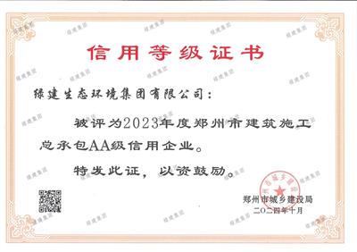 2023年度鄭州市建筑施工總承包AA級信用企業