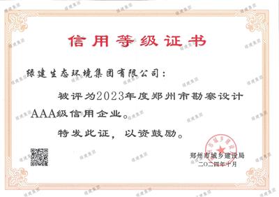2023年度鄭州市勘察設計AAA級信用企業