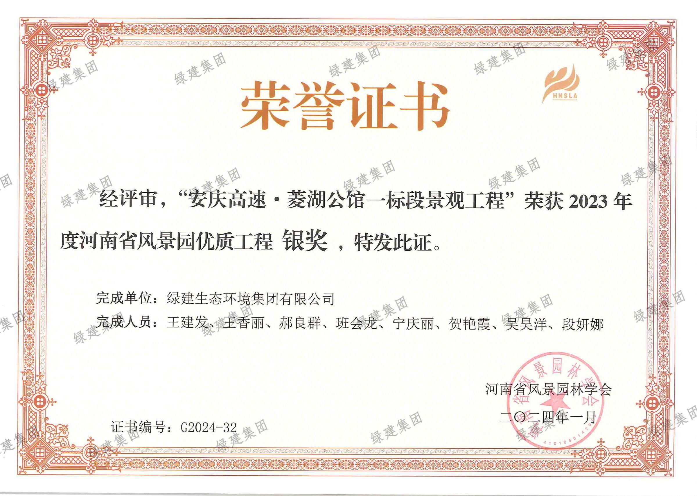 2023年度安慶高速菱湖公館優(yōu)質(zhì)工程銀獎