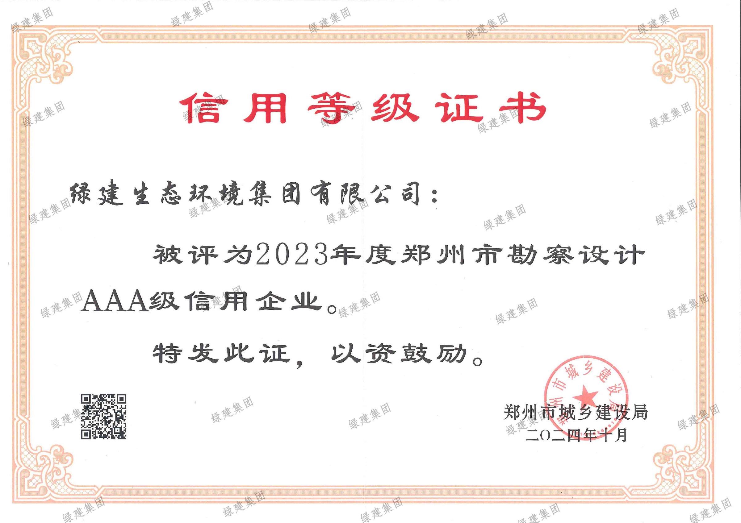 2024年度鄭州市勘察設(shè)計(jì)AAA級(jí)信用企業(yè)