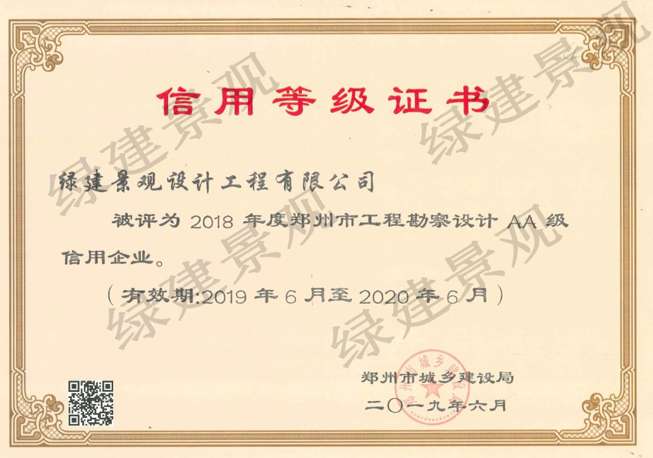 2018年度鄭州市工程勘察設(shè)計(jì)AA級信用企業(yè)