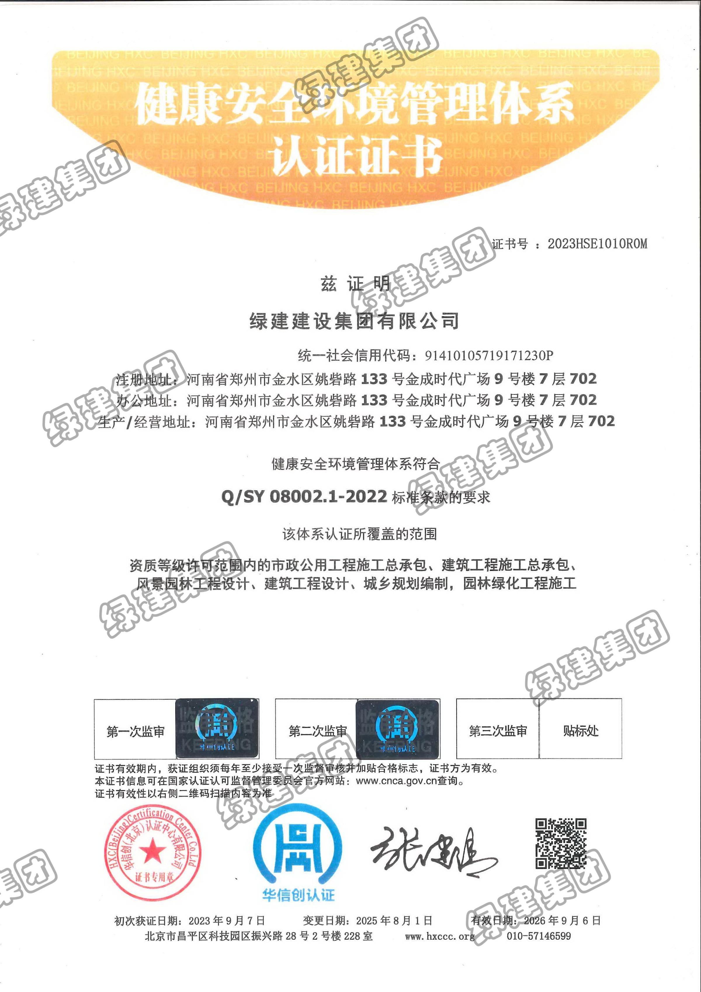 HSE健康安全環(huán)境管理體系認(rèn)證證書(08002.1-2022)