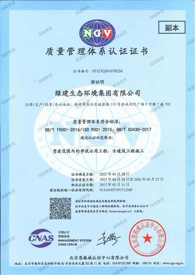 質量管理體系認證證書(施工)