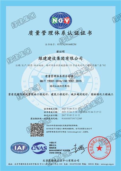 質量管理體系認證證書(園林綠化設計、建筑設計、城鄉(xiāng)規(guī)劃設計)
